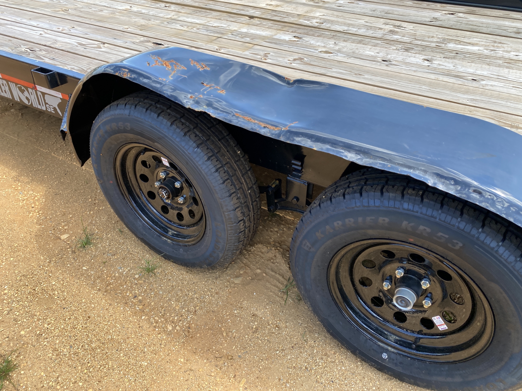 (Damaged), T/A, 18' length, 84" width, dovetail, storable ramps