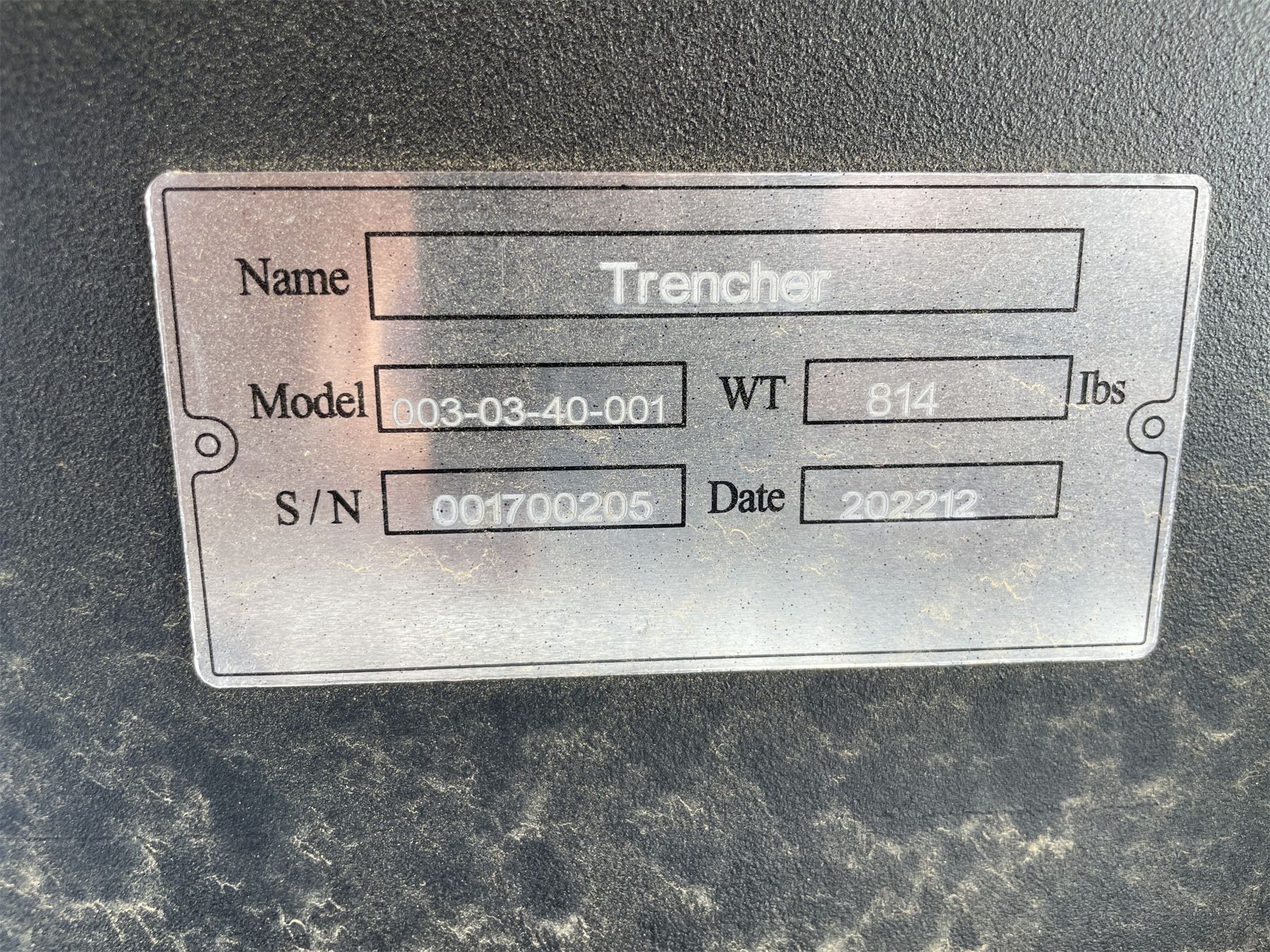 TRENCHER, 48" long, 003-03-40-001, S/N 001700205, fits skid steer loader (B-5)