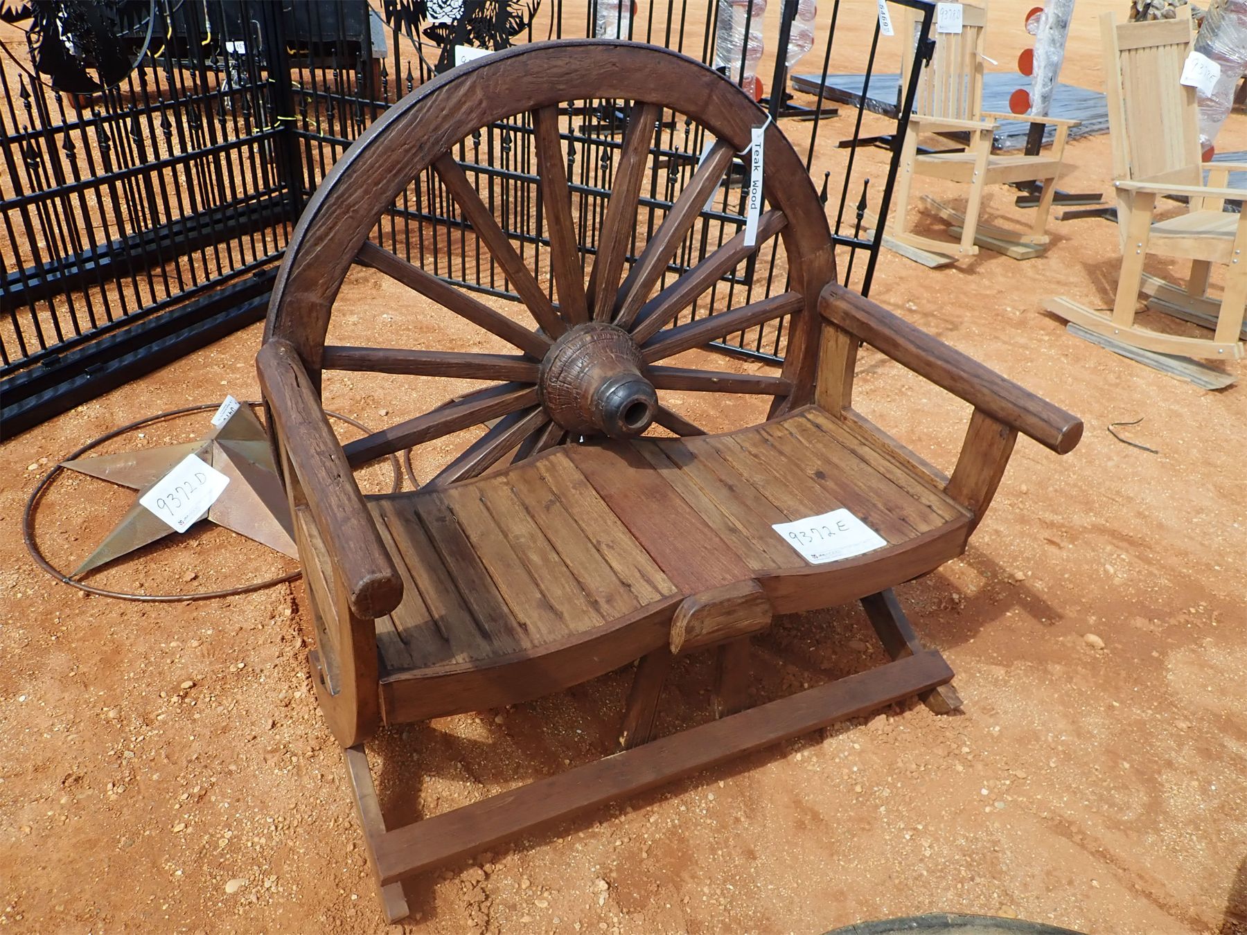 9372E Teak wood wagon wheel bench