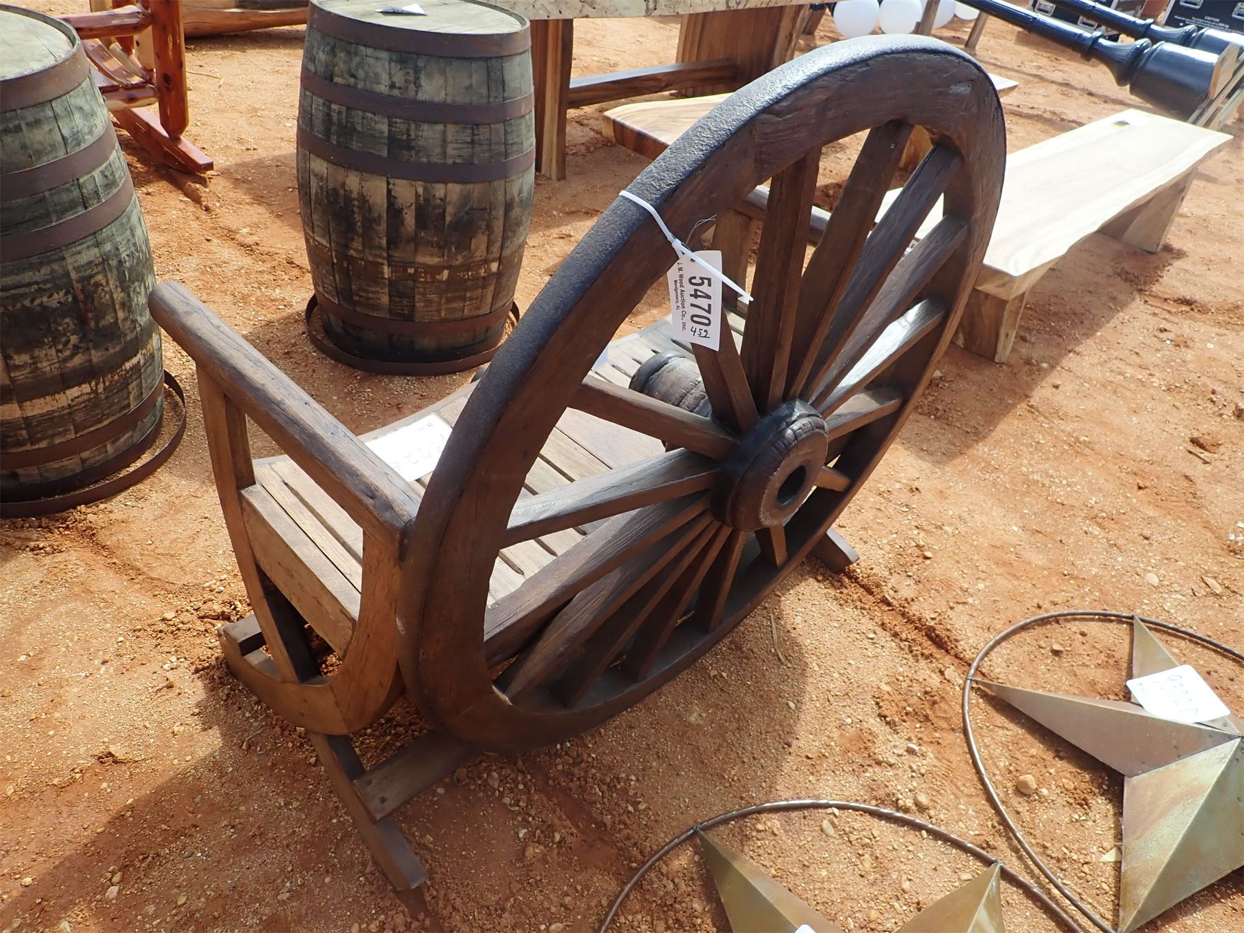 Teak wood wagon wheel bench (C-6)
