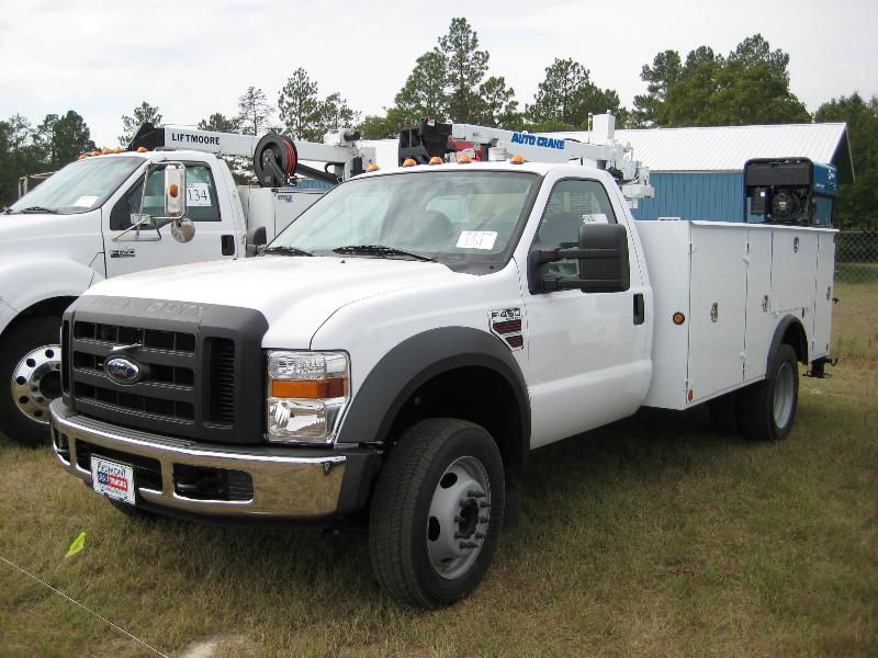 (UNUSED) 2008 FORD F450 SERVICE TRUCK, S/N B69443, V8 POWERSTROKE DIESEL, 5 SPD USED SERVICE BODY, AUTOCRANE 5005 CRANE, I/R AIR COMP W/KOHLER 12.5 ENG, MILLER 185 WELDER OUTRIGGERS, 357 MI