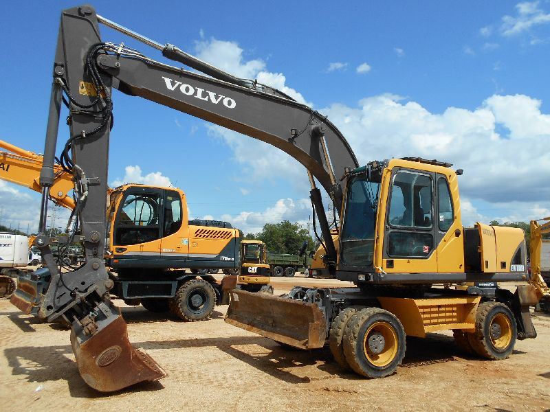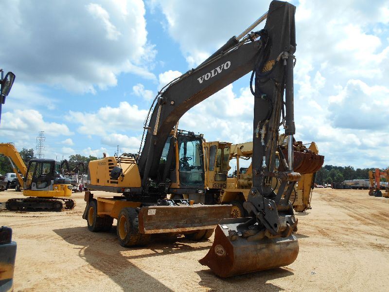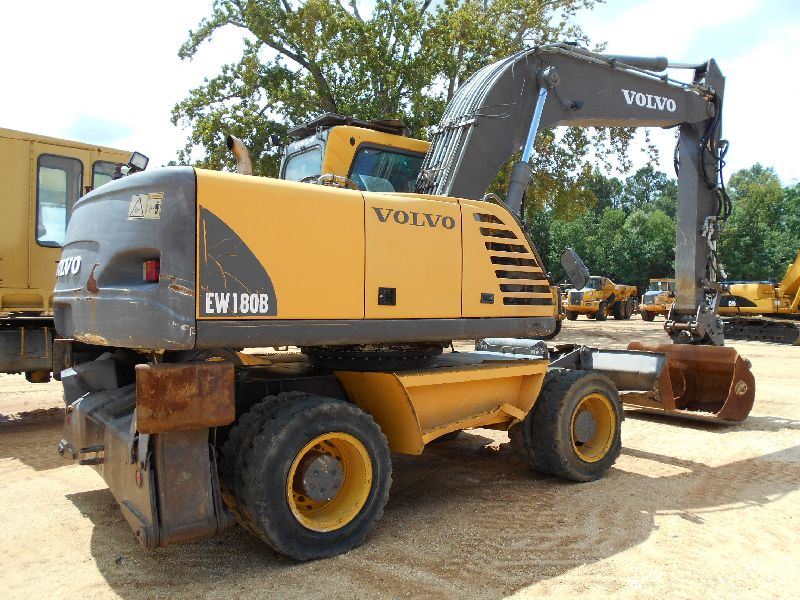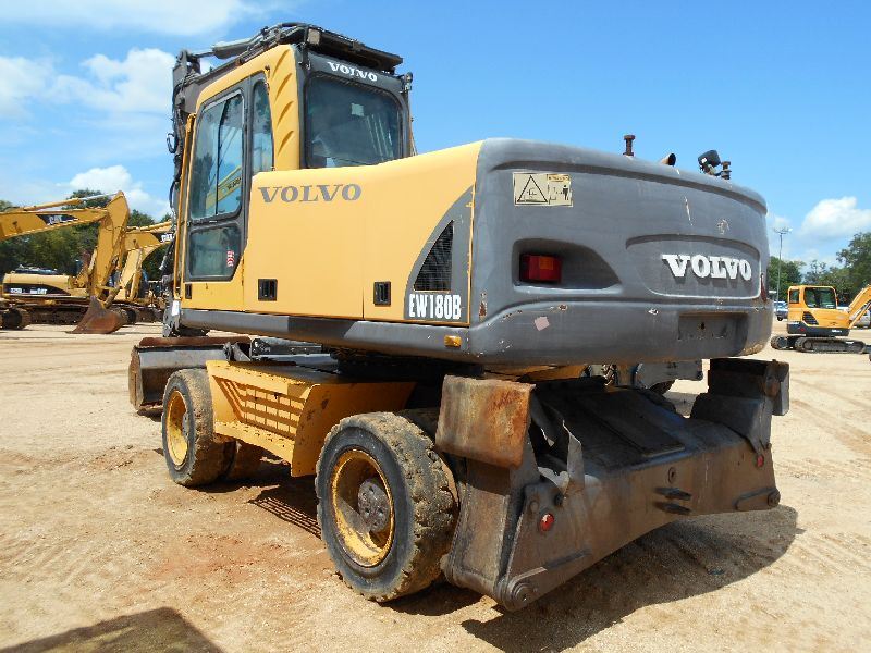 VOLVO EW180B WHEELED EXCAVATOR, S/N EW180BV8751305, 8' 8" STICK, 60" CLEAN OUT BUCKET, WRIST-O-TWIST, AUX HYD, ECAB W/AIR, METER READING 6,842 HOURS