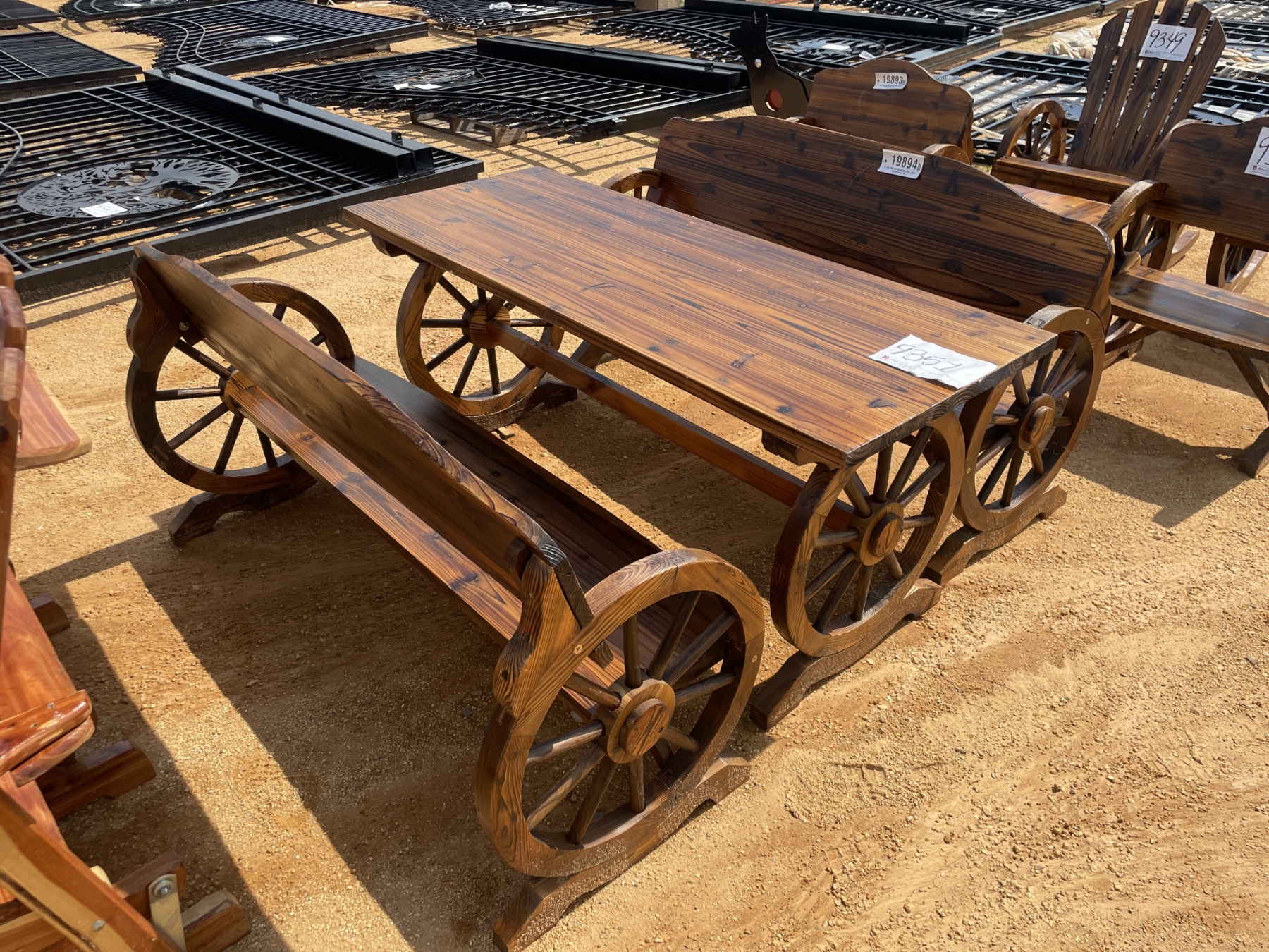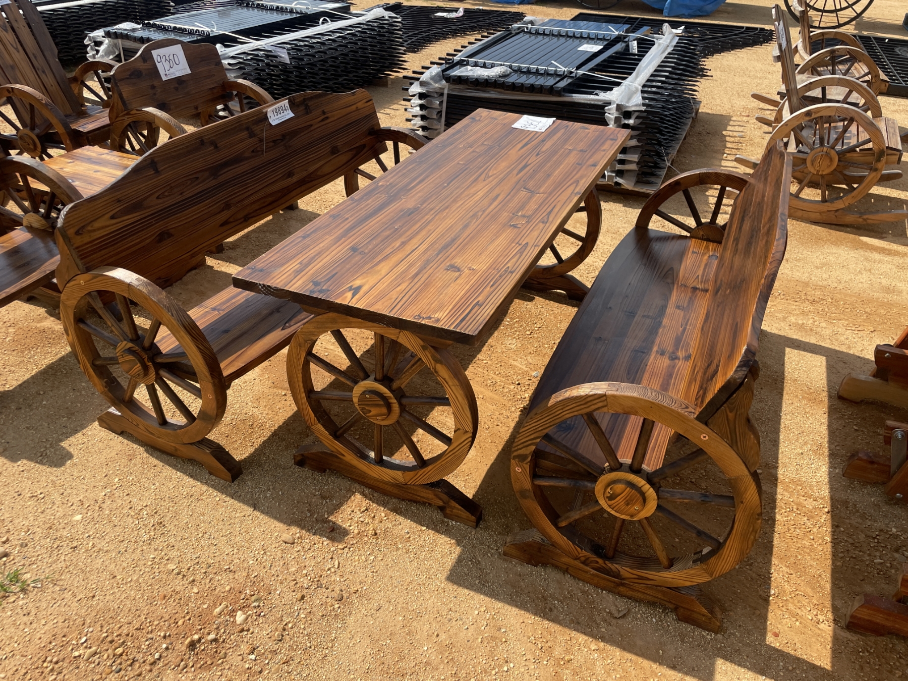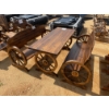 WAGON WHEEL BENCHES & TABLE, 3 pieces