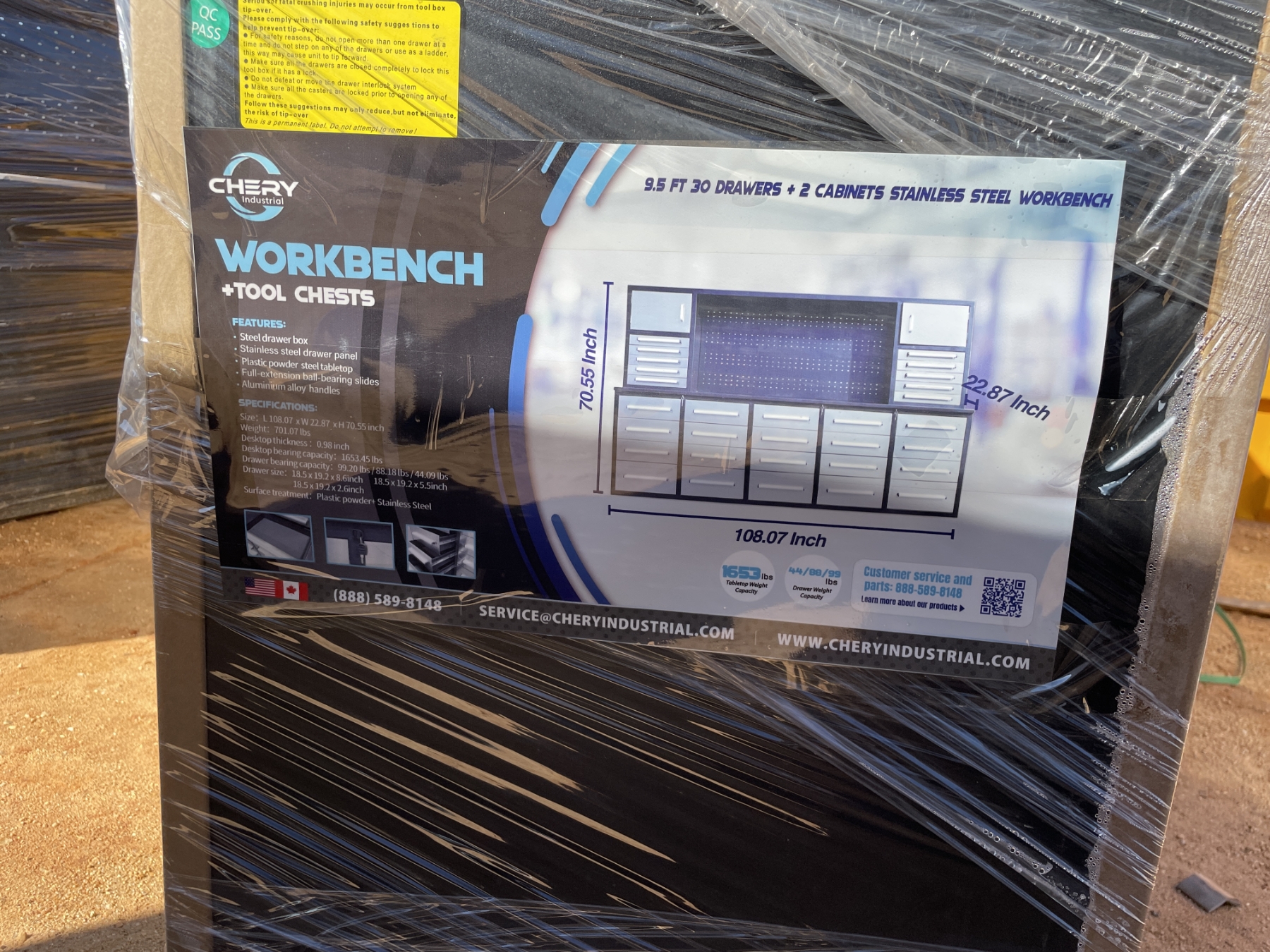 WORK BENCH, 30 drawers, stainless steel top